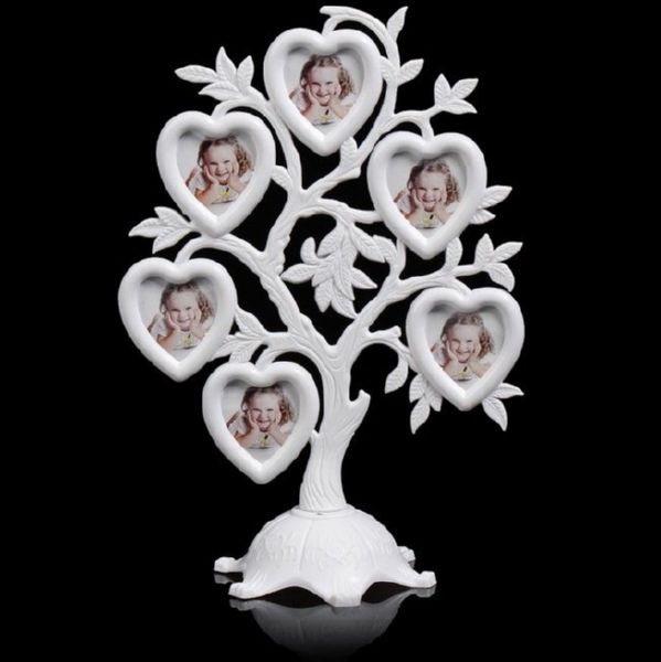 Фоторамка пластик на 6 фото 4,5х3 см "Дерево с сердцами" белая 26,5х19,5х11 см 39301383930138