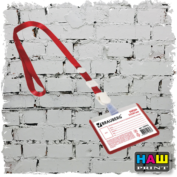 Бейдж школьника горизонтальный (55х90мм), на ленте со съемным клипом, КРАСНЫЙ, BRAUBERG, 235762