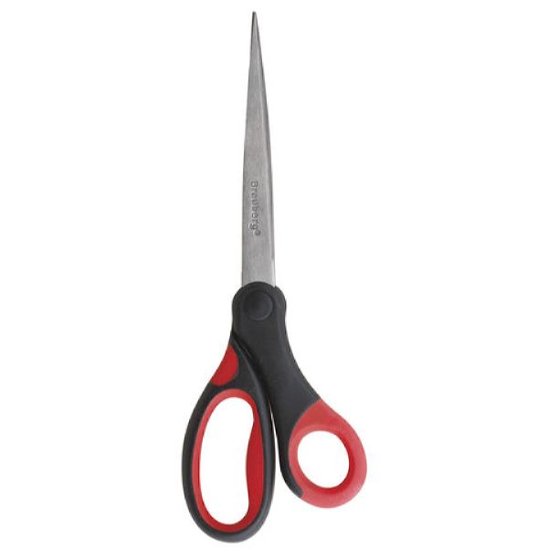 Ножницы BRAUBERG "Office", 210 мм, прорезин.ручки, красно-черные, 2-х сторон. заточка,блистер,231566