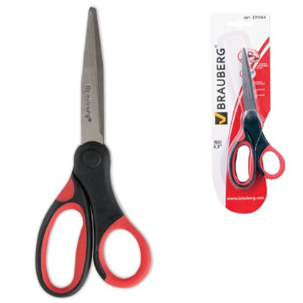 Ножницы BRAUBERG "Energy", 160 мм, прорезин. ручки, красно-черные, 2-х сторон.заточка,блистер,231564