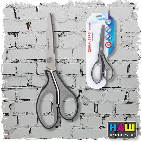 Ножницы BRAUBERG "SUPER", 210 мм, серо-черные, 2-х сторонняя заточка, эргономичные ручки, 237296
