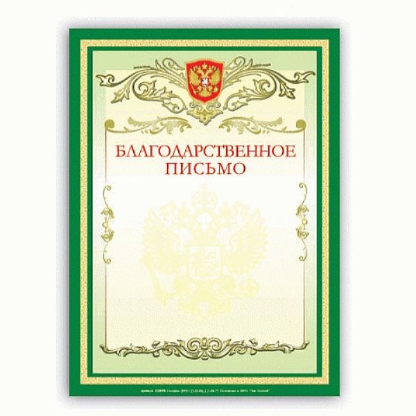 Грамота Благодарственное письмо А4, мелованный картон, зеленая, BRAUBERG, 122093