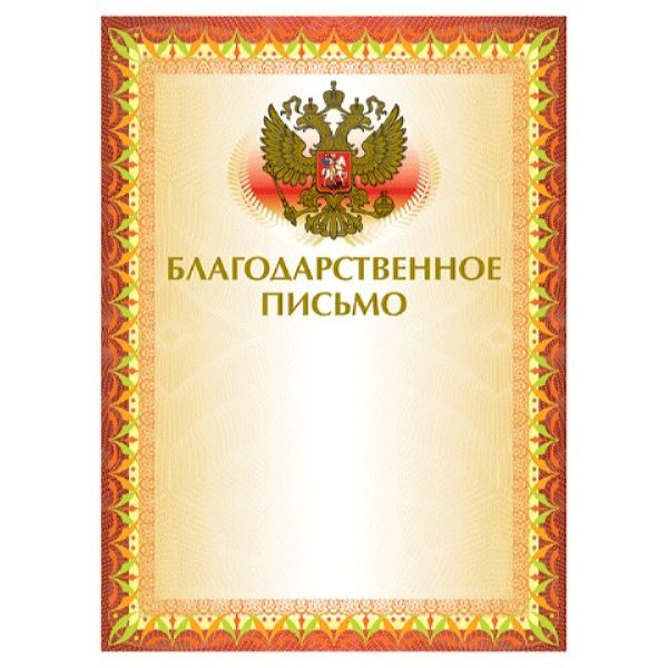 Грамота Благодарственное письмо А4, мелованный картон, конгрев, тиснение фольгой, желтая, BRAUBERG