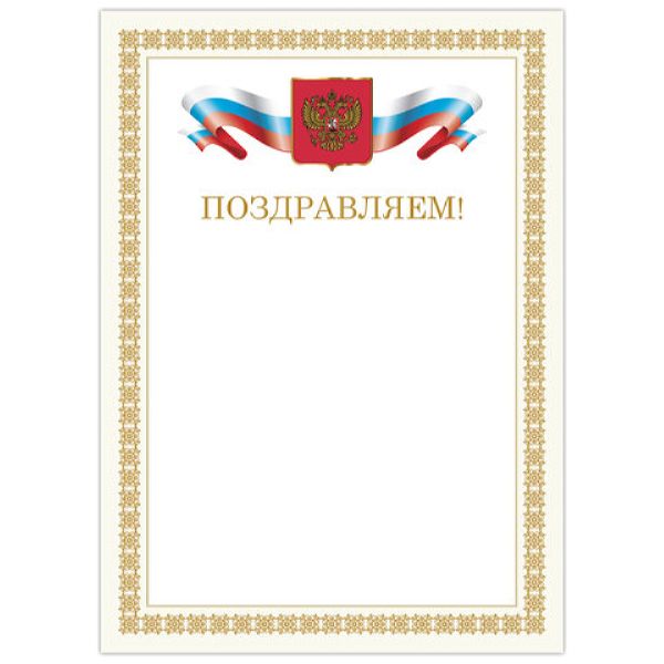 Грамота Поздравляем А4, мелованный картон, бронза, Бежевая рамка, BRAUBERG, 128365