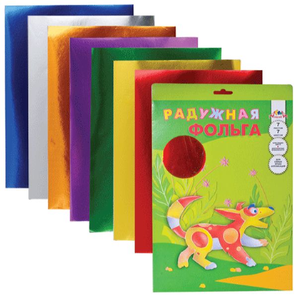 Цветная фольга А4 205*255мм АППЛИКА РАДУЖНАЯ, 7л., 7цв., С0171