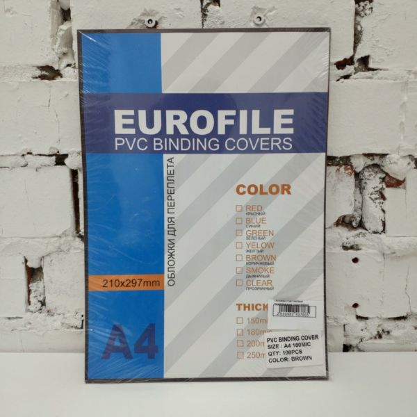 Обложки пластиковые тонированные (коричневая дымка) ПВХ А4, 180 мкн (100 шт.) (Yu) (Гибкая пленка ПВХ) (Код:ПС000004426)