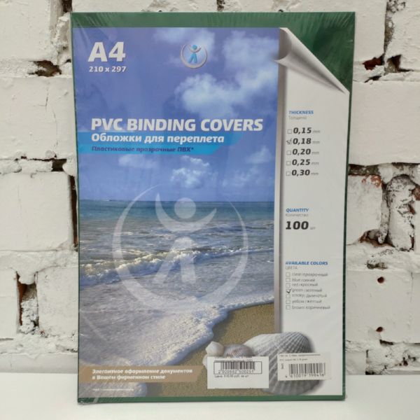 Обложки ПВХ А4, 0,18мм, прозрачные/зеленые (100)