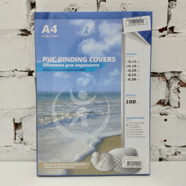 Обложки ПВХ А4, 0,18мм, прозрачные/синие (100)