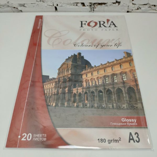 Глянцевая 180 гр A3 20 листов Fora