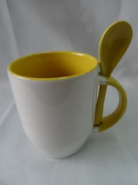 Керамическая кружка с ложкой в ручке (желтая)