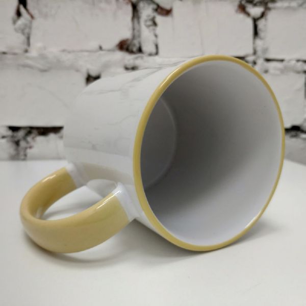 Кружка, цветная ручка и каемка (желтая)