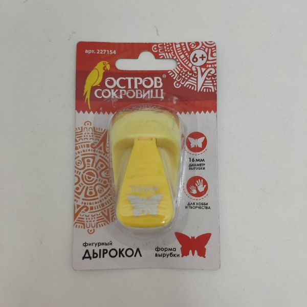 Дырокол фигурный "Бабочка", диаметр вырезной фигуры 16 мм, ОСТРОВ СОКРОВИЩ, 227154