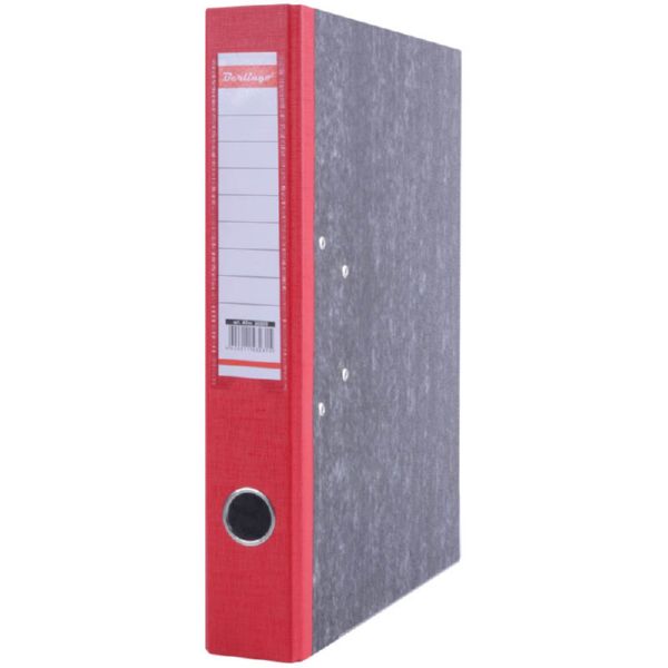Папка-регистратор 50мм, мрамор, с карманом на корешке, нижний метал. кант, красная BERLINGO