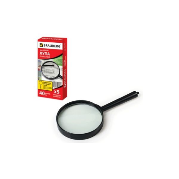 Лупа просмотровая BRAUBERG диаметр 40 мм, увеличение 5, 451797